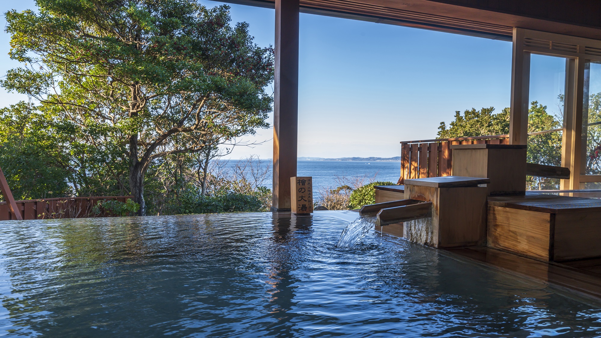 伝統の銘湯「行幸の湯(みゆきのゆ)」源泉から引いた由緒ある温泉SPA&目前の太平洋や遠く四国まで見渡せる最高の眺望を誇るラウンジ。