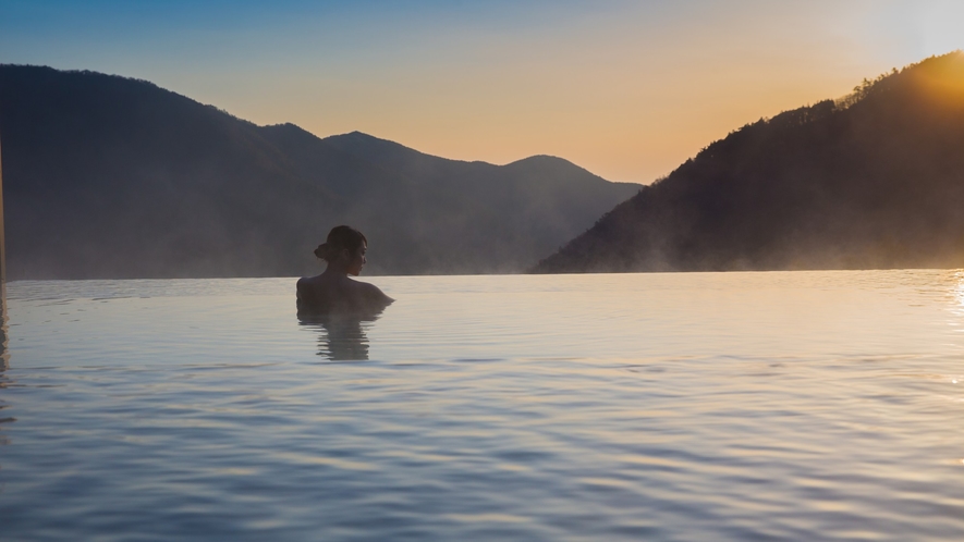 湯とけむり、山と谷、空と温泉が一体となる、絶景露天風呂。日帰りプランは12時チェックイン〜22時チェックアウトで、10時間たっぷり滞在できます。夕食付プランのため、大切な方と癒しのひと時を過ごせます。全室に温泉露天風呂が備わっているので、ゆったり温泉時間を楽しめます。