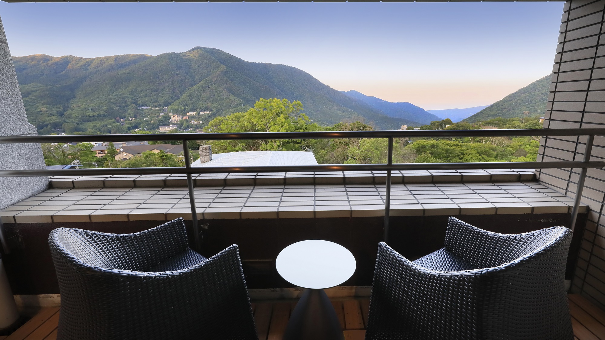 最上階にある展望露天風呂からは、箱根の山々を見渡すことができます。泉質は、塩化物泉の別名「温まりの湯」又アルカリ度が高く、美容目的で使用されるメタ珪酸を多く含む「美肌の湯」です。日帰りプランでは、次の間付き和室/源泉100%の部屋風呂付。本間の他に次の間がついているため、お食事場所とお休み場所と分けてゆったりお使いいただけます。