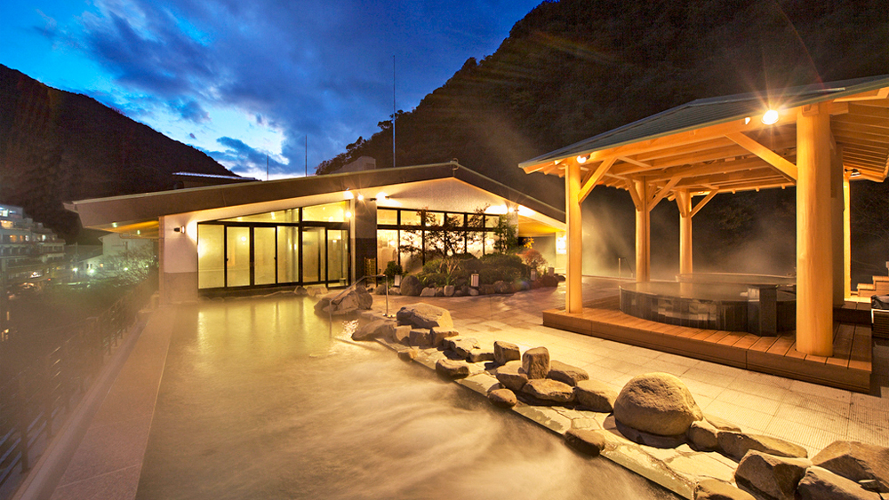 大きく窓が取られ開放感たっぷりの大浴場で、湯河原の名湯を思う存分楽しめます。露天風呂では、千歳川のせせらぎを聞き、風を感じながら浸かる醍醐味を堪能。日帰りプランはチェックイン12時から。 当日22時チェックアウトのショートステイ。 昼食、夕食付きの0泊2食付きプランです。(お部屋付き)