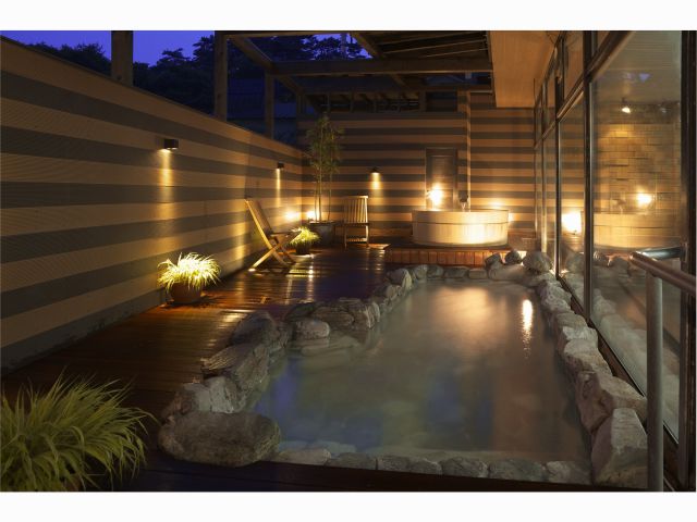 伊香保ではまだ新しい温泉「白銀の湯」を使用。大展望風呂では、朝はご来光、昼・夕は赤城山、夜は夜景と様々な景色を眺めながら入浴が愉しめます。露天風呂付き客室もおすすめです。日帰りプランは、お部屋で夕食付デイユースプラン。