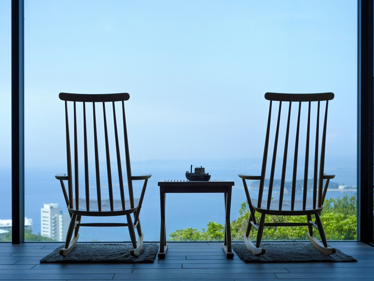 岬そのものが宿屋となった海舟。オーシャンビューの絶景が魅力です。海辺の最も近くにある混浴露天風呂「浜千鳥の湯」。まるで大海原を漂うような開放感で源泉を愉しめます。「湯あみ着」に着替えての入浴となります。 男女別の大浴場や2つの貸切風呂でも、海を眺めながら入浴を満喫。
