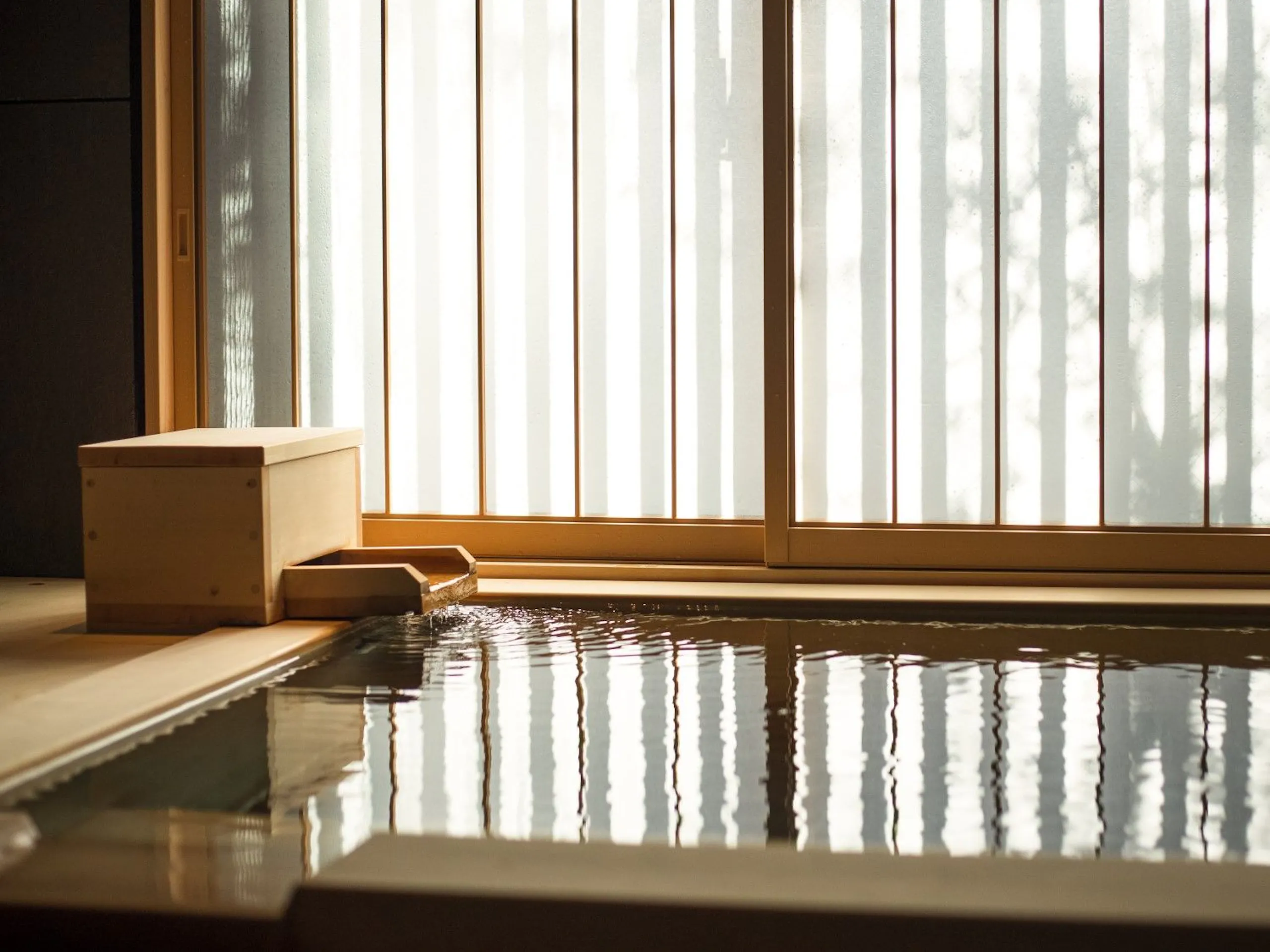 ひのきが香る客室温泉や、四季の移ろいが愉しめる日本庭園など、美しい文化に囲まれた空間が魅力。